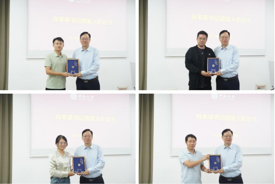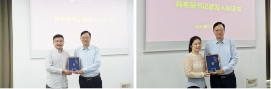 随后,党委书记肖来荣为新进教师颁发入职证书,并欢迎大家加入机电工程学院大家庭。