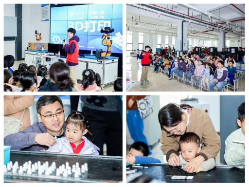 “3D打印奇遇”环节,志愿者用“搭积木”的生动比喻讲解技术原理。家长和孩子一同近距离观摩模型的数字化设计与实体打印过程,并分工合作完成模型制作与创意涂色,在共同创作中体验科技与艺术的交融乐趣。
