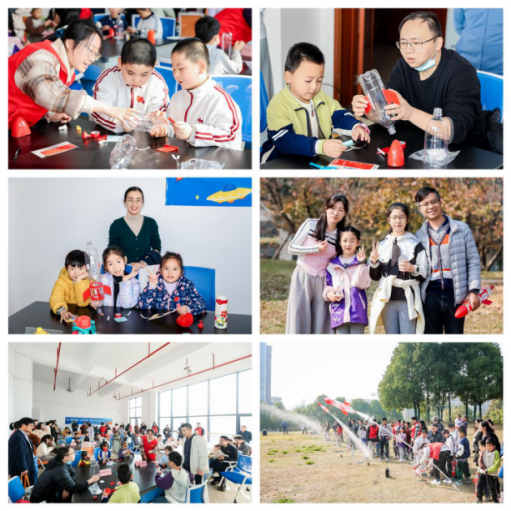 “水火箭工坊”更是将现场氛围推向高潮。在观看趣味科普视频了解气压与反冲力知识后,各家庭齐动手,家长和孩子一起设计、组装、调试箭体,共同完成关键的制作步骤。最后的发射环节,随着一枚枚承载着亲子智慧与合作的水火箭呼啸升空,现场爆发出阵阵惊叹与欢呼,科学原理在实践中变得真切可感,亲子情谊也在协作中悄然升温。