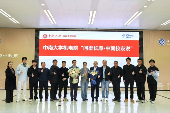 2025年11月2日,由中南大学学生工作部(处)主办、机电工程学院承办的“共上一堂‘芯’课,共话AI端侧能源未来”问渠长廊“中南校友说”活动在潇湘校区机电工程学院B214举办。本次活动邀请了豪鹏科技董事长潘党育、副总裁兼首席技术官廖兴群两位杰出校友作为主讲嘉宾,机电工程学院党委副书记李玲芝、副院长云忠应邀出席本次活动。