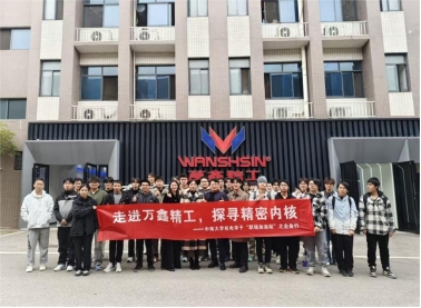 同学们首先参观了万鑫精工企业文化展厅,系统了解了公司的发展历程、重要里程碑及供应链体系。展厅内陈列的高精密减速机、伺服电机、驱动器等核心产品,以及全生命周期产品解决方案,展示了企业在智能制造领域的技术积累与创新实力。