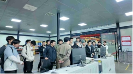 在生产车间参观走廊,同学们参观了从加工到装配的完整生产链。高效的精益生产线、高精度的研发测试平台、严格的安全管控措施以及准时化的物流系统,令同学们印象深刻。其中,透气帽防漏油结构和连续329天安全生产无事故的记录,引发了大家的讨论与赞叹。