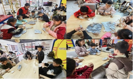 随后,在“锡纸小船DIY”环节,志愿者备好水盆、锡纸、橘子等材料,鼓励孩子们化身“小小造船师”动手创作。面对锡纸变形、船身漏水等问题,志愿者耐心讲解浮力与排水体积的关联,手把手指导孩子们优化小船造型,助力小船顺利下水。