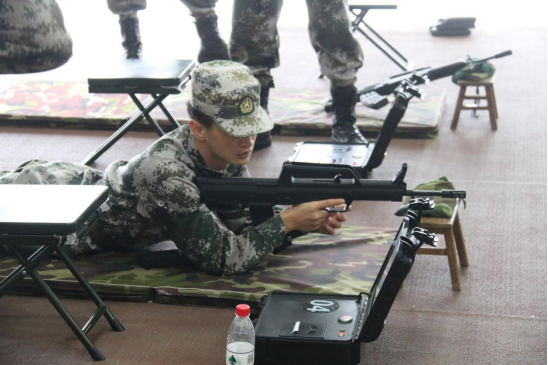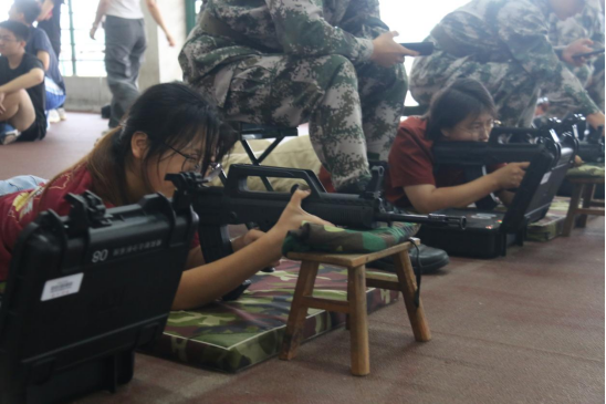本次大赛采用计时赛制,每轮4支队伍同步比拼,以完赛总用时决出团队排名,并按个人总环数评选优秀奖。参赛队伍均由6名学生(3男3女)组成,队员需依次完成4×50米折返跑,再进行卧姿模拟射击,每人配备30发子弹,需至少10发命中有效环数方可接力,未达标则需重新装弹直至完成要求。本次比赛采取25米的固定胸环靶进行,使用1:1模拟的95式步枪,射击时还会产生后坐力,还原实弹射击情景。