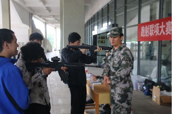 上午8:30,大赛正式开始。退役士兵方乾勇主持活动,介绍了大赛背景和目的。机电工程学院国防教育专干张志扬介绍了比赛规则,并对各位参赛同学表示热烈欢迎,希望同学们能在比赛中凝聚关心国防、热爱国防、建设国防、保卫国防的思想共识。退伍士兵赵琪森强调了安全注意事项。现场多位退伍士兵以专业的素养亲身示范,讲解模拟射击要领。