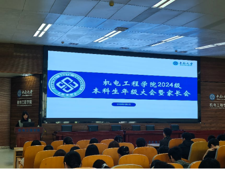 2026年4月10日中午12点30分,机电工程学院2024级本科生年级大会暨家长会在中铝科技大楼B214报告厅顺利召开。本次大会由辅导员张悦、宋子昱主持,围绕学风建设、安全教育、学长引航、发展规划四大主题展开,为同学们梳理成长路径、明晰发展方向,2024级全体本科生到场参会。