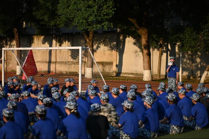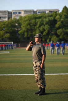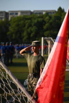 一摆,一踢,同学们踏步向前,似蛟龙破浪,行毅而力坚;一转,一定,同学们转体改向,如鸾凤乘空,身挺而志立。目光如炬,而后造炬成阳;身形似铁,而后熔铁为碑。同学们在训练场上迸发出无穷的热情,褪去了上的青涩,洗去了心中的稚嫩,将自身置于集体的熔炉,让军训锻炼自我的意志。