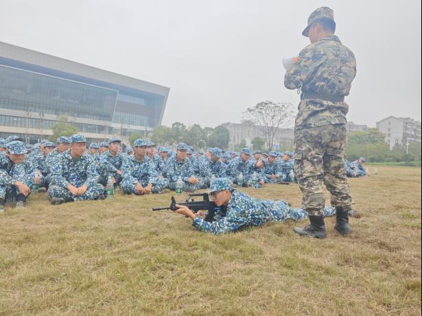 教官讲解完毕后,同学们逐列进行射击练习。教官一边示范标准姿势,一边穿梭在队列中,亲手纠正同学们的持枪角度与身体姿态。针对有同学据枪时手臂发抖、瞄准偏移的问题,教官们耐心地进行 “一对一” 指导,帮助大家掌握动作要领。经过一小时的练习,同学们逐渐摆脱紧张,从最初的 “手忙脚乱” 到后来的 “稳如磐石”,动作愈发标准流畅。